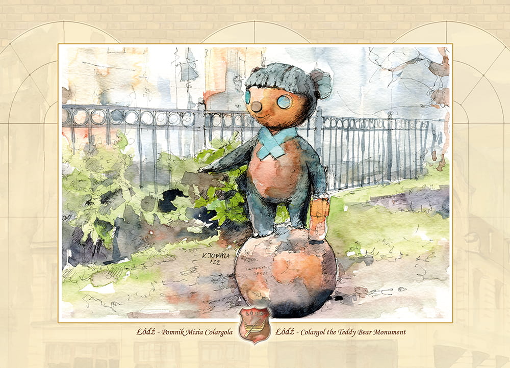 Przedstawia pomnik Misia Coralgola w Łodzi.