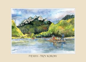 Ukazuje artystyczną wizję spływu Przełomem Dunajca i widok na Trzy Korony.
