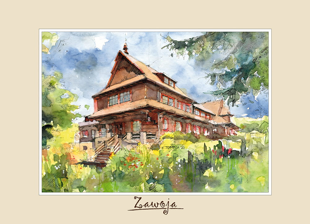 Reprodukcja obrazu akwarelowego autorstwa p. Katarzyny Tomali, która jest autorką obrazów stworzonych wyłącznie na użytek naszej kolekcji.
