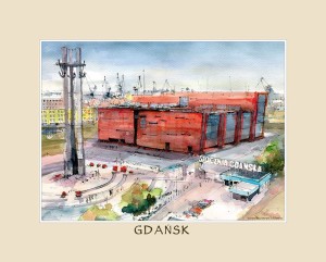 Reprodukcja 24 x 30 cm Gdańsk 08 ECS Europejskie Centrum Kultury akwarela