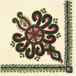 Serwetka z motywami folkloru podhalańskiego.