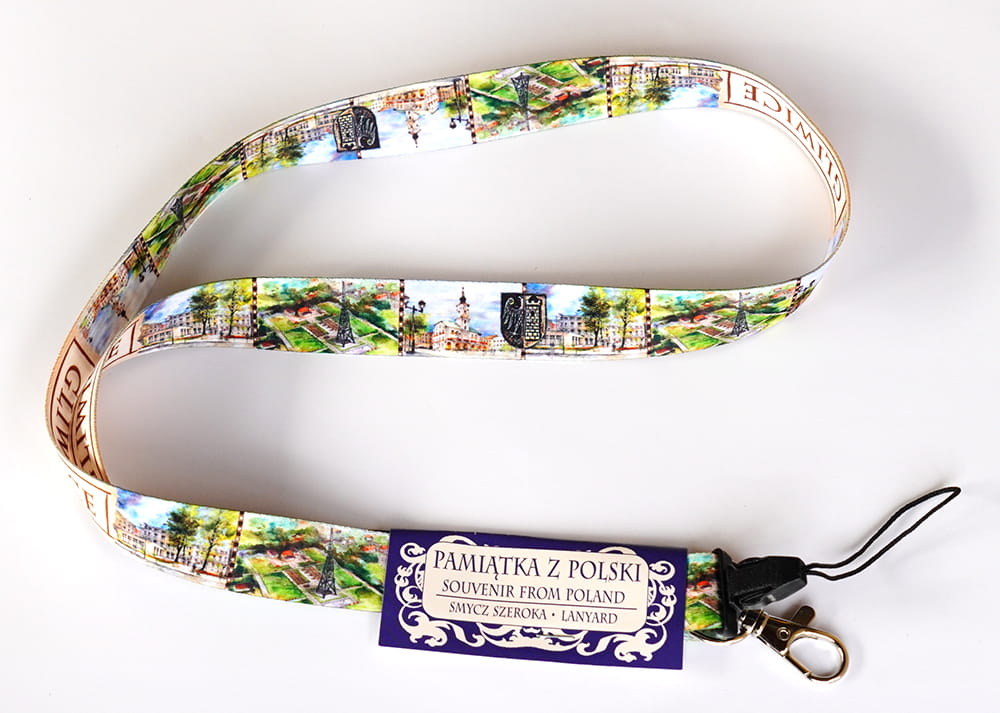 Zakończona metalowym karabińczykiem i plastikową szybkozłączką do np. telefonu komórkowego.
