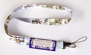 Zakończona metalowym karabińczykiem i plastikową szybkozłączką do np. telefonu komórkowego.