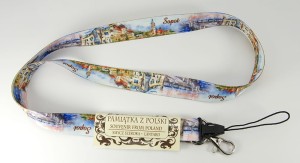 Zakończona metalowym karabińczykiem i plastikową szybkozłączką do np. telefonu komórkowego.
