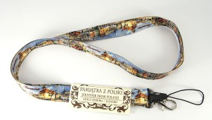 Zakończona metalowym karabińczykiem i plastikową szybkozłączką do np. telefonu komórkowego.