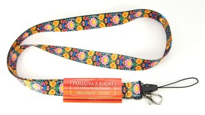 Zakończona metalowym karabińczykiem i plastikową szybkozłączką do np. telefonu komórkowego.