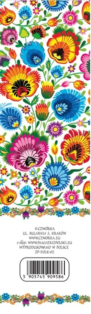 Zakładka do książki wydrukowana na papierze kredowym o gramaturze 350 g/m2 i powleczona błyszczącą folią. Druk dwustronny