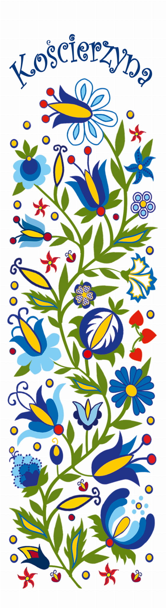 Wzór opracowany przez wydawnictwo "Czwórka" na podstawie tradycyjnych motywów haftu kaszubskiego.