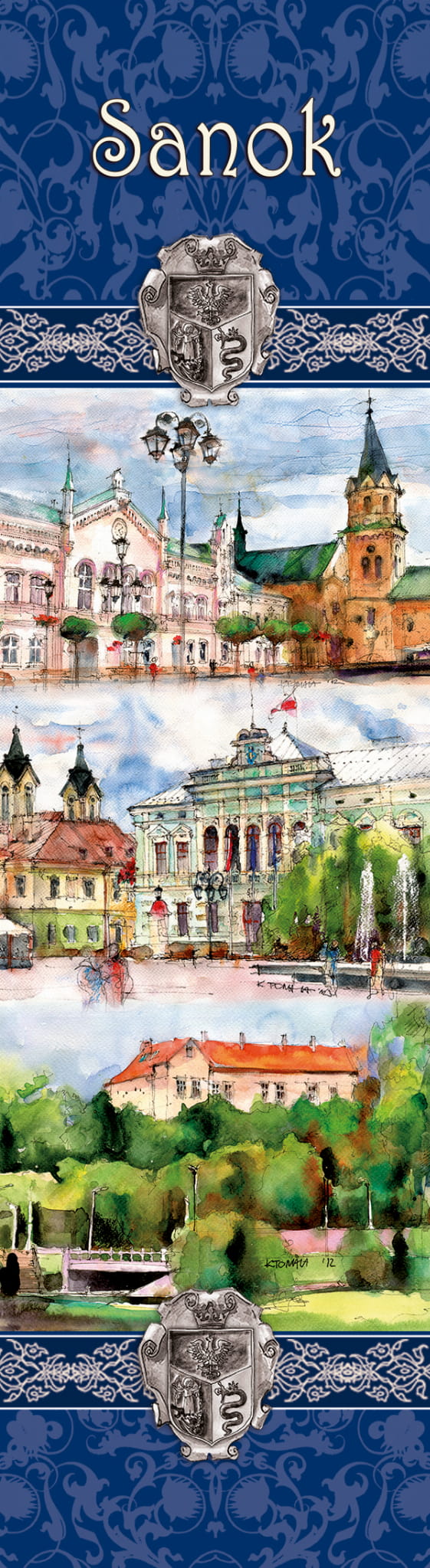 Wzór opracowany przez wydawnictwo "Czwórka" na podstawie obrazów akwarelowych malowanych na wyłączny użytek naszej kolekcji, których autorką jest p. Katarzyna Tomala. Przedstawia w artystyczny sposób najciekawsze obiekty Sanoka.