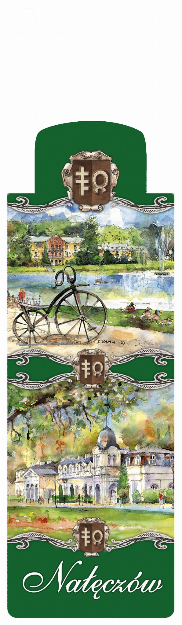 Wzór opracowany przez wydawnictwo "Czwórka" na podstawie obrazów akwarelowych malowanych na wyłączny użytek naszej kolekcji przez p. Katarzynę Tomalę. Przedstawia w artystyczny sposób najciekawsze obiekty Nałęczowa.