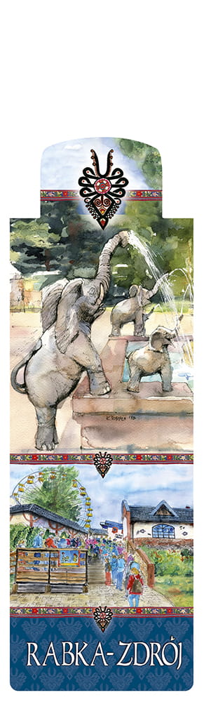 Wzór opracowany przez wydawnictwo "Czwórka" na podstawie obrazów akwarelowych malowanych na wyłączny użytek naszej kolekcji przez p. Katarzynę Tomalę. Przedstawia w artystyczny sposób najciekawsze obiekty Rabki Zdroju.