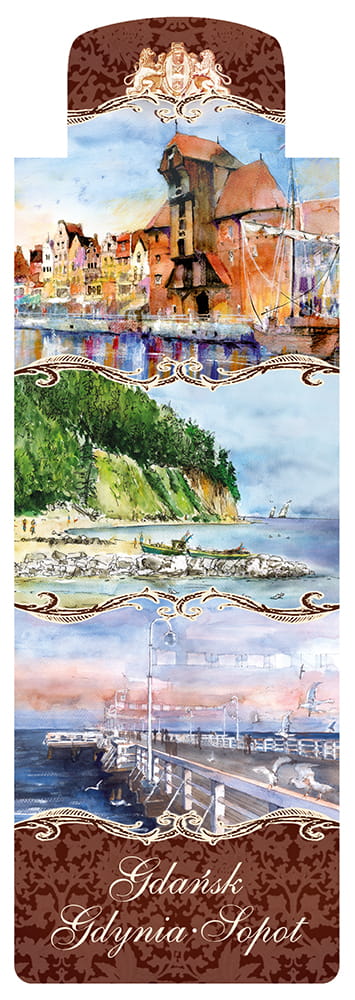 Wzór opracowany przez wydawnictwo "Czwórka" na podstawie obrazów akwarelowych malowanych na wyłączny użytek naszej kolekcji przez p.Katarzynę Tomalę. Przedstawia w artystyczny sposób najciekawsze obiekty i krajobrazy Trójmiasta.
