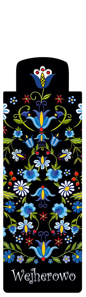 Wzór opracowany przez wydawnictwo "Czwórka" na podstawie motywów tradycyjnego polskiego haftu ludowego z rejonu Kaszub. Miła pamiątka z Wejherowa.