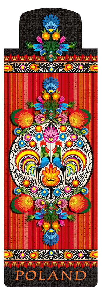 Wzór oparty na tradycyjnej polskiej twórczości ludowej z okolic Łowicza, opracowany przez wydawnictwo "Czwórka" na bazie prac artystki ludowej p.Mirosławy Stefaniak.