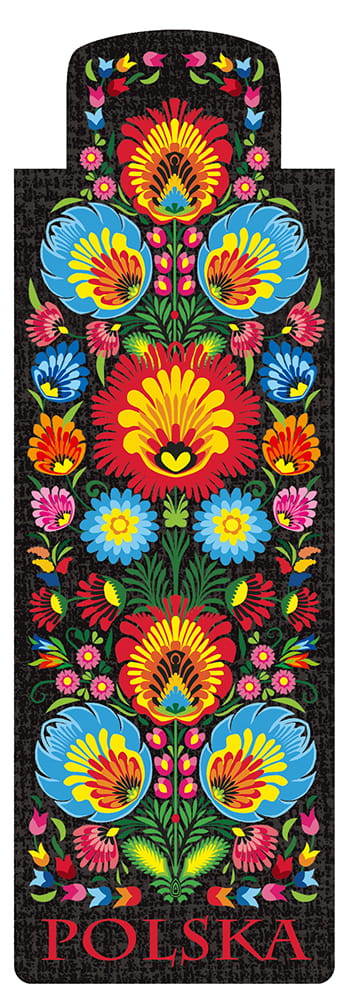 Wzór oparty na tradycyjnej polskiej twórczości ludowej z okolic Łowicza, opracowany przez wydawnictwo "Czwórka" na bazie prac artystki ludowej p.Mirosławy Stefaniak.