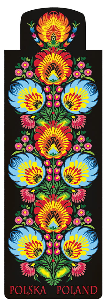 Wzór oparty na tradycyjnej polskiej twórczości ludowej z okolic Łowicza, opracowany przez wydawnictwo "Czwórka" na bazie prac artystki ludowej p.Mirosławy Stefaniak.