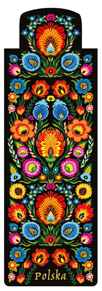 Wzór oparty na tradycyjnej polskiej twórczości ludowej z okolic Łowicza, opracowany przez wydawnictwo "Czwórka" na bazie prac artystki ludowej p.Mirosławy Stefaniak.