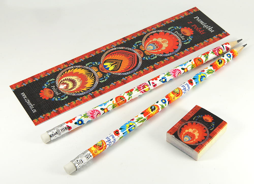 Zestaw 2 ołówki, gumka i zakładka Folk 02 Łowicki