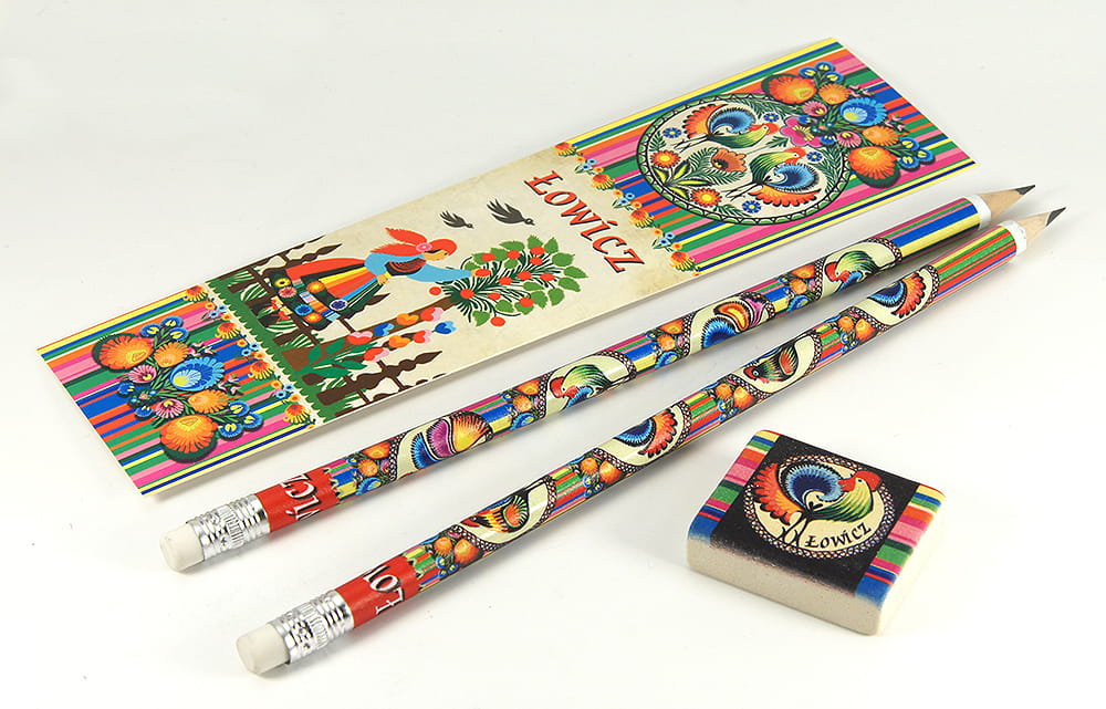 Zestaw 2 ołówki, gumka i zakładka Folk 06 Łowicki